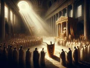 Julian followed Plotinus and Iamblichus in making the supreme principle the One (ἓν) or the Good (τὸ ἀγαθὸν) which presides over the intelligible world (νοητὸς κόσμος), where rule Plato’s Ideas, now called the intelligible gods (νοητοὶ θεοί). Iamblichus had imported into the Neo-Platonic system the intermediary world of intellectual gods (noeroi theoi). On them Helios-Mithras, their supreme god and centre, bestows the intelligence and creative and unifying forces that he has received from his transcendental counterpart among the intelligible gods. The third member of the triad is the world of sense-perception governed by the sun, the visible counterpart of Helios. What distinguishes Julian’s triad[2] from other Neo-Platonic triads is this hierarchy of three suns in the three worlds: and further, the importance that he gives to the intermediary world, the abode of Helios-Mithras. He pays little attention to the remote intelligible world and devotes his exposition to Helios, the intellectual god, and the visible sun. Helios is the link that relates the three members of the triad. His “middleness” (μεσότης) is not only local: he is in every possible sense the mediator and unifier. μεσότης is the Aristotelian word for the “mean,” but there is no evidence that it was used with the active sense of mediation before Julian. A passage in Plutarch however seems to indicate that the “middleness” of the sun was a Persian doctrine: “The principle of good most nearly resembles light, and the principle of evil darkness, and between both is Mithras; therefore the Persians called Mithras the Mediator (μεσίτης).[3] Naville has pointed out the resemblance between the sun as mediator and the Christian Logos, which Julian may have had in mind. Julian’s system results in a practically monotheistic worship of Helios, and here he probably parts company with Iamblichus.
