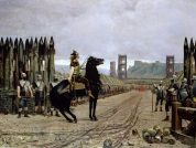 His arrival being known from the color of his robe, and the troops of cavalry, and the cohorts which he had ordered to follow him being seen, as these low and sloping grounds were plainly visible from the eminences, the enemy join battle. A shout being raised by both sides, it was succeeded by a general shout along the ramparts and whole line of fortifications. Our troops, laying aside their javelins, carry on the engagement with their swords. The cavalry is suddenly seen in the rear of the Gauls; the other cohorts advance rapidly; the enemy turn their backs; the cavalry intercept them in their flight, and a great slaughter ensues. Sedulius the general and chief of the Lemovices is slain; Vergasillaunus the Arvernian, is taken alive in the flight, seventy-four military standards are brought to Caesar, and few out of so great a number return safe to their camp. The besieged, beholding from the town the slaughter and flight of their countrymen, despairing of safety, lead back their troops from the fortifications. A flight of the Gauls from their camp immediately ensues on hearing of this disaster, and had not the soldiers been wearied by sending frequent reinforcements, and the labor of the entire day, all the enemy’s forces could have been destroyed. Immediately after midnight, the cavalry are sent out and overtake the rear, a great number are taken or cut to pieces, the rest by flight escape in different directions to their respective states. Vercingetorix, having convened a council the following day, declares, “That he had undertaken that war, not on account of his own exigences, but on account of the general freedom; and since he must yield to fortune, he offered himself to them for either purpose, whether they should wish to atone to the Romans by his death, or surrender him alive. Embassadors are sent to Caesar on this subject. He orders their arms to be surrendered, and their chieftains delivered up. He seated himself at the head of the lines in front of the camp, the Gallic chieftains are brought before him. They surrender Vercingetorix, and lay down their arms. Reserving the Aedui and Arverni, [to try] if he could gain over, through their influence, their respective states, he distributes one of the remaining captives to each soldier, throughout the entire army, as plunder.