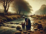 In Denbighshire there is a parish which is called Llanferes, and there is there Rhyd y Gyfarthfa (the Ford of Barking). In the old days the hounds of the countryside used to come together to the side of that the ford to bark, and nobody dared go to find out what was there until Urien Rheged came. And when he came to the side of the ford he saw nothing except a woman washing. And then the hounds ceased barking, and Urien sized the woman and he had his will of her; and then she said “God’s blessing on the feet which brought thee here.” “Why?” said he. “Because I have been fated to wash here until I should conceive a son by a Christian. And I am daughter to the King of Annwfn, and come thou here at the end of the year and then thou shalt receive that boy.” And so he came and he received there a boy and a girl: that is, Owein son of Urien and Morfudd daughter of Urien.