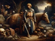 Then Peredur returned to his mother and her company, and he said to her, “Mother, those were not angels, but honourable knights.” Then his mother swooned away. And Peredur went to the place where they kept the horses that carried firewood, and that brought meat and drink from the inhabited country to the desert. And he took a bony piebald horse, which seemed to him the strongest of them. And he pressed a pack into the form of a saddle, and with twisted twigs he imitated the trappings which he had seen upon the horses. And when Peredur came again to his mother, the Countess had recovered from her swoon. “My son,” said she, “desirest thou to ride forth?” “Yes, with thy leave,” said he. “Wait, then, that I may counsel thee before thou goest.” “Willingly,” he answered; “speak quickly.” “Go forward, then,” she said, “to the Court of Arthur, where there are the best, and the boldest, and the most bountiful of men. And wherever thou seest a church, repeat there thy Paternoster unto it. And if thou see meat and drink, and have need of them, and none have the kindness or the courtesy to give them to thee, take them thyself. If thou hear an outcry, proceed towards it, especially if it be the outcry of a woman. If thou see a fair jewel, possess thyself of it, and give it to another, for thus thou shalt obtain praise. If thou see a fair woman, pay thy court to her, whether she will or no; for thus thou wilt render thyself a better and more esteemed man than thou wast before.”